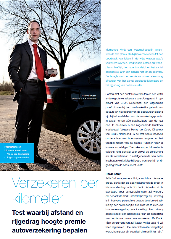 Geplaatst op 16/03/200803/01/2019&U Magazine: Verzekeren per km Wat betekent de proef met een Kilometerverzekering voor één van de participerende verzekeraars? Download 08 &U_Magazine Verzekeren per km