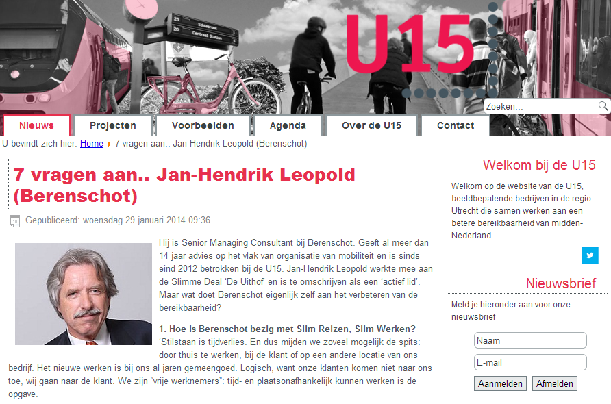 Geplaatst op 29/01/201404/01/2019 door adminInterview Jan-Hendrik Leopold (Berenschot) over SmartLease Op de U15 site een interview met Jan-Hendrik Leopold, onder meer over het SmartLease project. De U15 is een samenwerkingsverband van Utrechtse werkgevers rond mobiliteit en bereikbaarheid.