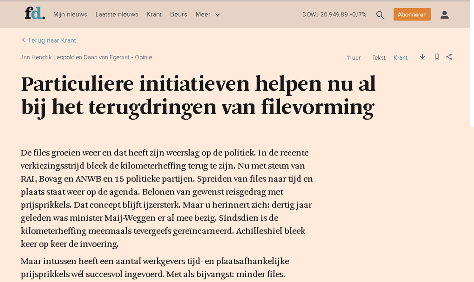 Bijdrage opiniepagina FD 3 mei 2017 van Daan van Egeraat en Jan Hendrik Leopold.