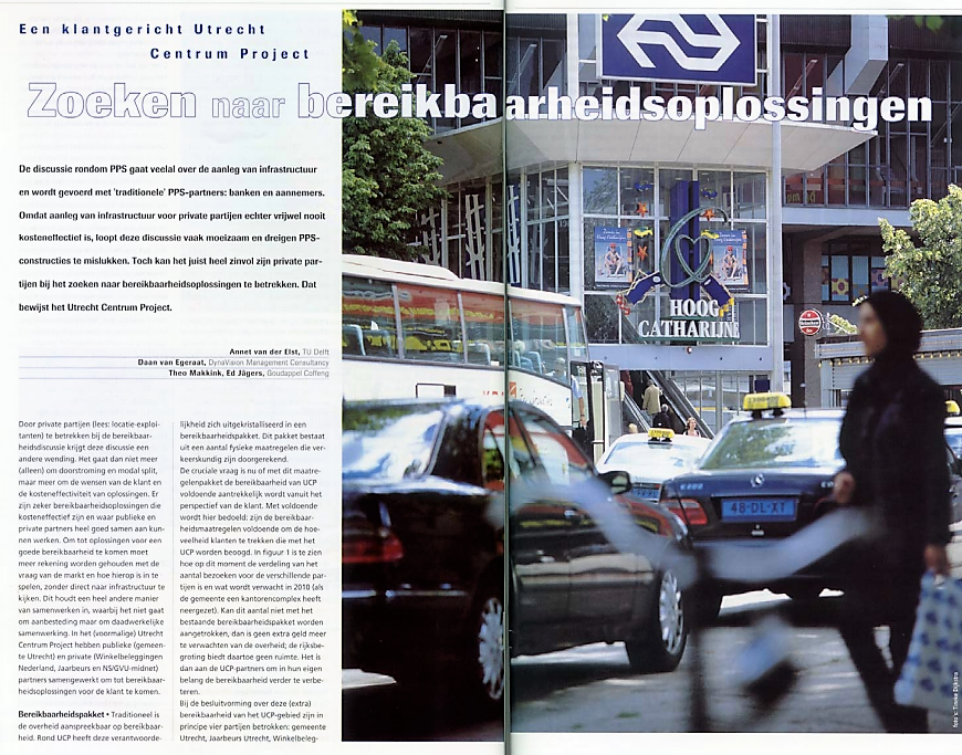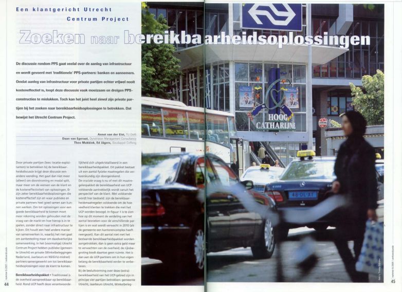 Na 10 jaar planvorming liep het UCP-project in 2000 op de klippen onder meer door het vernietigend oordeel over klantbereikbaarheid in dit rapport. We legden voor het eerst een cijfermatige relatie tussen bereikbaarheid en omzet en voorspelden omzettekorten tot 17%. Dat vormde de genadeklap voor UCP. Het Utrechtse vervolgproject zou een veel kleiner schaalniveau krijgen. Eindrapport, juli 2000, in samenwerking met Theo Makkink, Ed Jägers, Annet van der Elst.