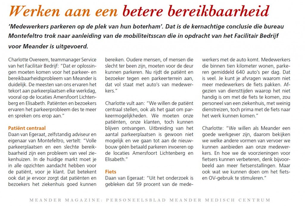 De bereikbaarheid van ziekenhuizen is al lang een punt van zorg. Binnen Transumo is geëxperimenteerd met Demand Management cq. Zelfsturingsarrangementen. In de zorgsector kreeg dit de gestalte van een nieuw arrangement met een gesegmenteerd en gedifferentieerd tarief, waarbij de maandelijkse inhouding voor parkeren door medewerkers afhankelijk is gemaakt van het feitelijk gemeten parkeergedrag.